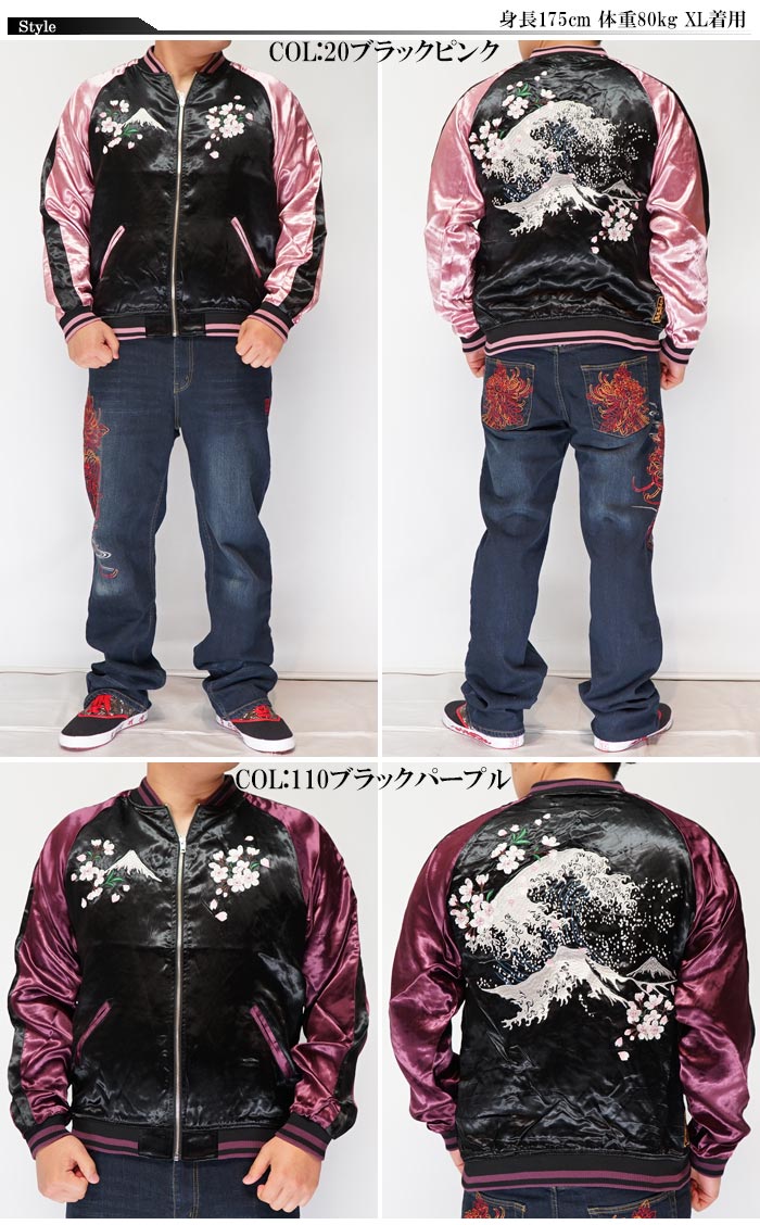 全国 どこでも 送料無料 !!新作!!【SCRIPT】藤蝶舞妓 柄 刺繍【花旅楽団】メンズ&レディース リバーシブルスカジャン 和柄