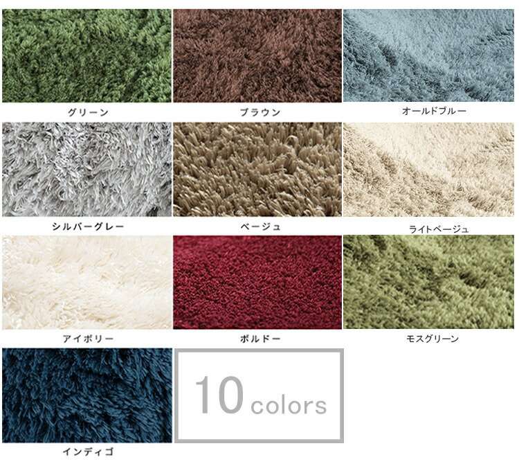 重量 約4.1kg 材質 表: パイルウエイト 700g/㎡ 中: ウレタン 9〜7mm仕上げ 裏: 灰色不織布+ホットメルト滑り止め加工 カラー グリーン(緑)/ブラウン(茶)/シルバーグレー(灰色)/ベージュ/アイボリー/ボルドー(赤)/インディゴ(青)/ ライトベージュ / モスグリーン / オールドブルー 仕様 フチ仕上げ 注意事項 床暖房・ホットカーペットに使用する場合は、長時間連続して使用しないでください。